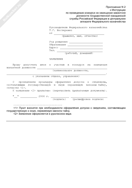 - 356Заявление гражданина Российской Федерации, изъявившего желание участвовать в конкурсе на замещение вакантной должности в центральном аппарате Федерального казначейства