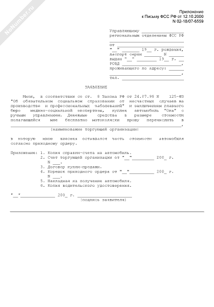 - 357Заявление гражданина на перечисление денежных средств из регионального отделения фонда социального страхования РФ на покупку автомобиля «Ока» с ручным управлением (в размере стоимости полагающейся ему бесплатно мотоколяски)