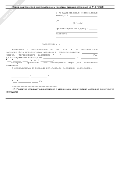 - 355Заявление гражданина о согласии быть исполнителем завещания (душеприказчиком)