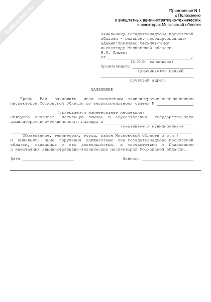 - 350Заявление гражданина о зачислении его внештатным административно-техническим инспектором Московской области