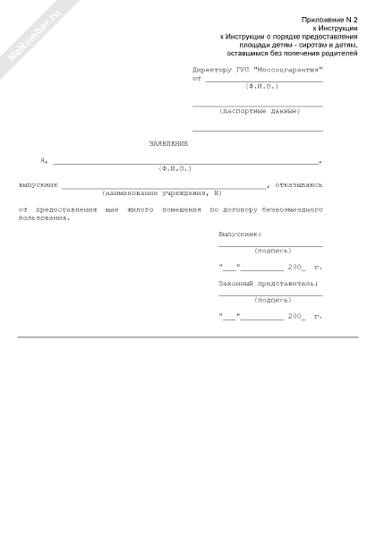- 346Заявление выпускника детского дома или школы-интерната об отказе от предоставления жилого помещения по договору безвозмездного пользования