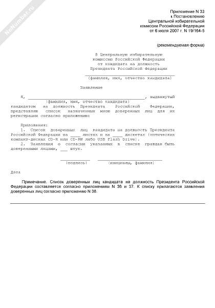 - 526Заявление кандидата на должность Президента Российской Федерации о назначении доверенных лиц