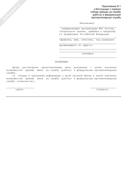 - 529Заявление кандидата о приеме на службу (работу) в федеральную противопожарную службу МЧС России
