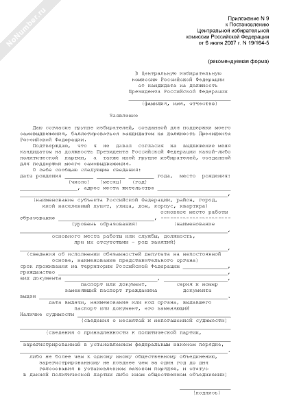 - 525Заявление кандидата о его согласии баллотироваться на должность Президента Российской Федерации от политической партии