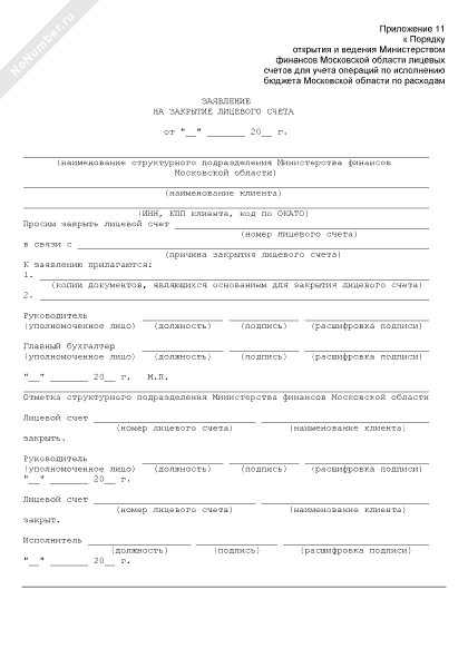 - 533Заявление клиента на закрытие лицевого счета в структурном подразделении Министерства финансов Московской области