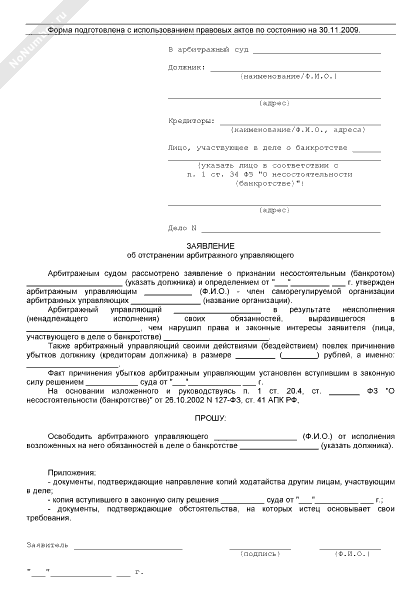 - 555Заявление лица, участвующего в деле о банкротстве, об отстранении арбитражного управляющего