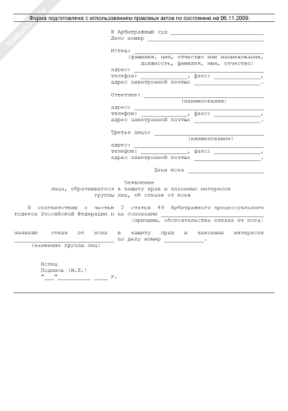 - 557Заявление лица, обратившегося в защиту прав и законных интересов группы лиц, об отказе от иска