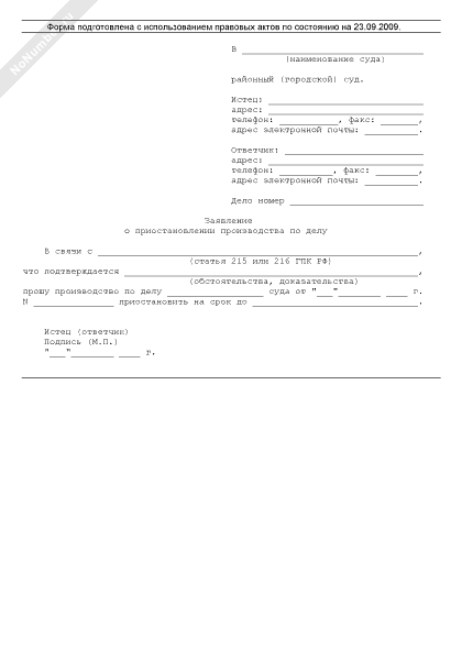 - 559Заявление лица, участвующего в деле, о приостановлении производства по делу (суд общей юрисдикции)