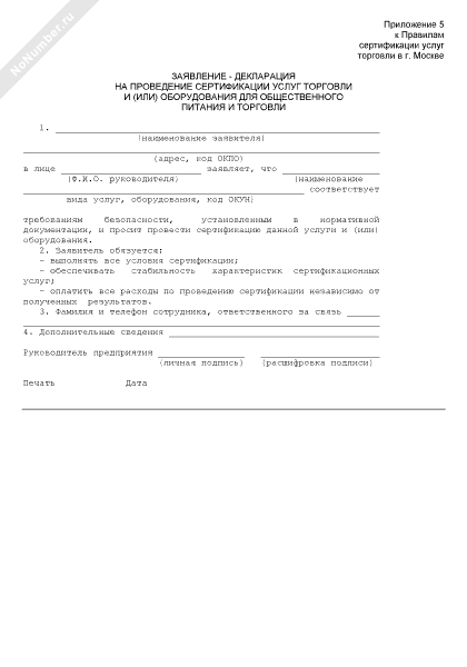 - 42Заявление — декларация на проведение сертификации услуг торговли и (или) оборудования для общественного питания и торговли в г. Москве