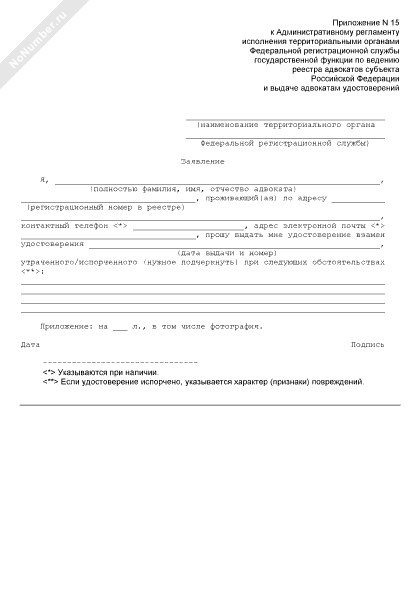 - 46Заявление адвоката территориального органа Федеральной регистрационной службы о выдаче нового удостоверения взамен утраченного или испорченного и перечень прилагаемых к нему документов