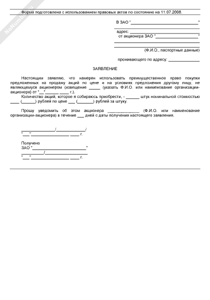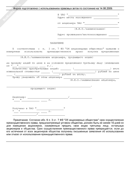 - 48Заявление акционера о намерении использовать преимущественное право покупки акций