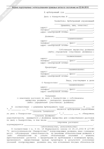 - 56Заявление арбитражного управляющего о взыскании расходов по делу о банкротстве с собственника имущества должника — унитарного предприятия или учредителей (участников) должника
