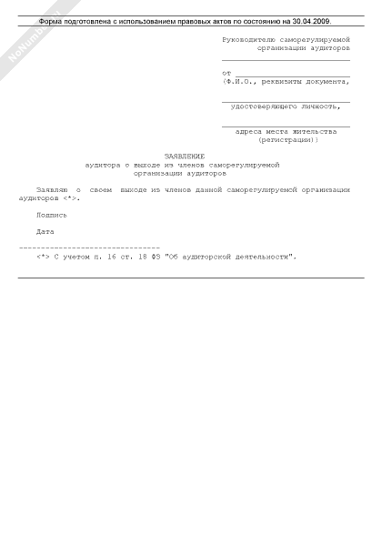 - 59Заявление аудитора о выходе из членов саморегулируемой организации аудиторов