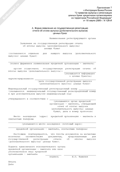 - 699Заявление на государственную регистрацию отчета об итогах выпуска (дополнительного выпуска) ценных бумаг