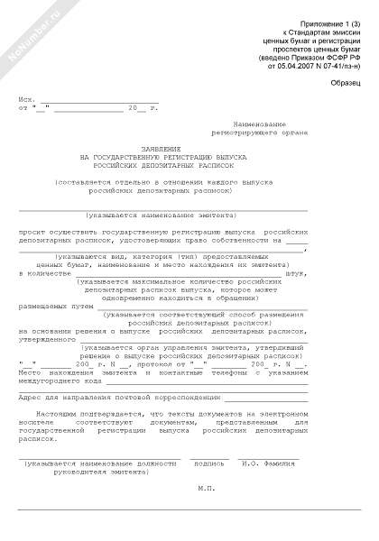 - 696Заявление на государственную регистрацию выпуска российских депозитарных расписок