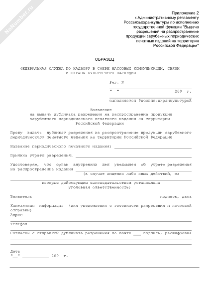 - 684Заявление на выдачу дубликата разрешения на распространение продукции зарубежного периодического печатного издания на территории Российской Федерации