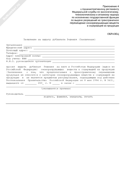 - 687Заявление на выдачу дубликата решения (заключения) на ввоз в Российскую Федерацию (вывоз из Российской Федерации) озоноразрушающих веществ и содержащей их продукции
