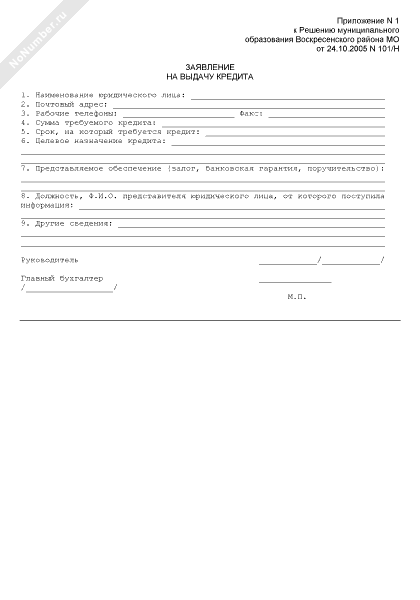 - 683Заявление на выдачу кредита юридическому лицу из бюджета Воскресенского муниципального района Московской области
