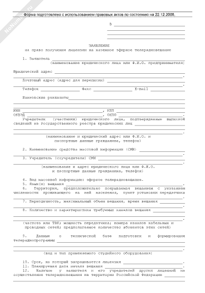 - 930Заявление на право получения лицензии на наземное эфирное телерадиовещание