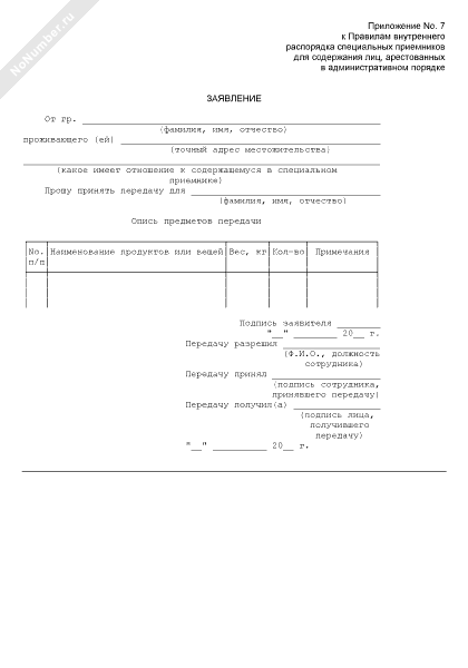 - 931Заявление на прием передач для лиц, содержащихся в специальном приемнике