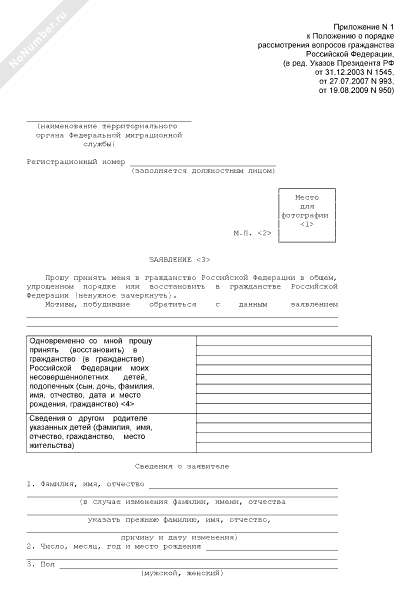 - 925Заявление на приобретение гражданства Российской Федерации (для иностранных граждан и лиц без гражданства, проживающих за пределами Российской Федерации и имеющих хотя бы одного нетрудоспособного родителя, состоящего в гражданстве Российской Федерации)