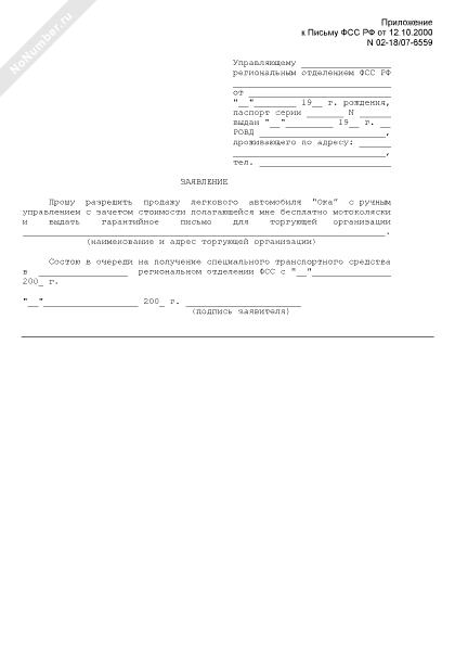 - 927Заявление на приобретение легкового автомобиля «Ока» с ручным управлением с зачетом стоимости мотоколяски, полагающейся бесплатно