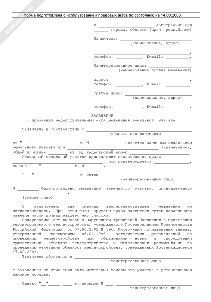 - 87Заявление в арбитражный суд о признании недействительным акта межевания земельного участка (юридические лица)