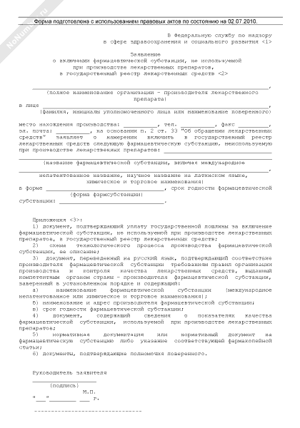 - 1130Заявление о включении фармацевтической субстанции, не используемой при производстве лекарственных препаратов, в государственный реестр лекарственных средств