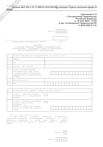 - 1152Заявление о внесении изменений в сведения об индивидуальном предпринимателе, содержащиеся в едином государственном реестре индивидуальных предпринимателей. Форма № Р24001
