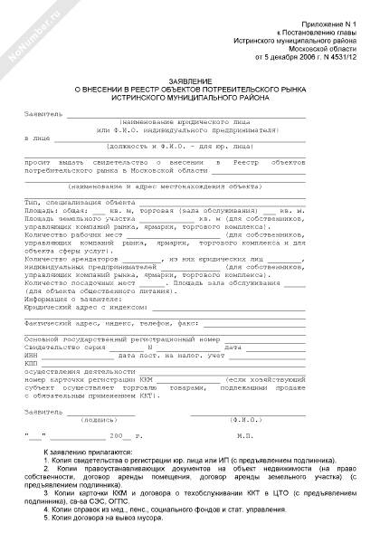 - 1142Заявление о внесении в Реестр объектов потребительского рынка Истринского муниципального района