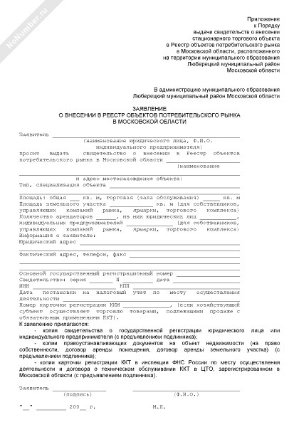 - 1141Заявление о внесении в реестр объектов потребительского рынка в Московской области