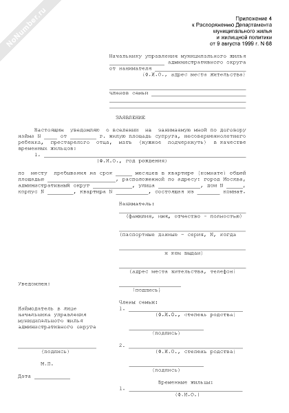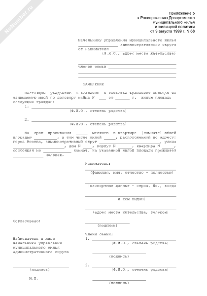 - 1266Заявление о вселении временных жильцов