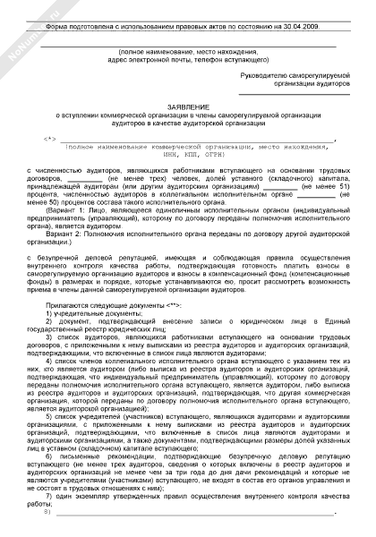 - 1272Заявление о вступлении коммерческой организации в члены саморегулируемой организации аудиторов в качестве аудиторской организации
