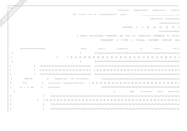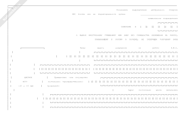 - 1357Заявление о выдаче иностранному гражданину или лицу без гражданства разрешения на работу, прибывающему в Россию в порядке, не требующем получения визы