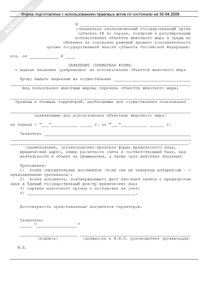 - 1346Заявление о выдаче лицензии (разрешения) на использование объектов животного мира