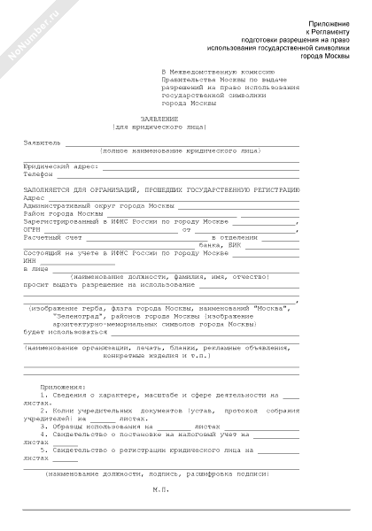 - 1353Заявление о выдаче разрешения на право использования государственной символики города Москвы (для юридического лица)