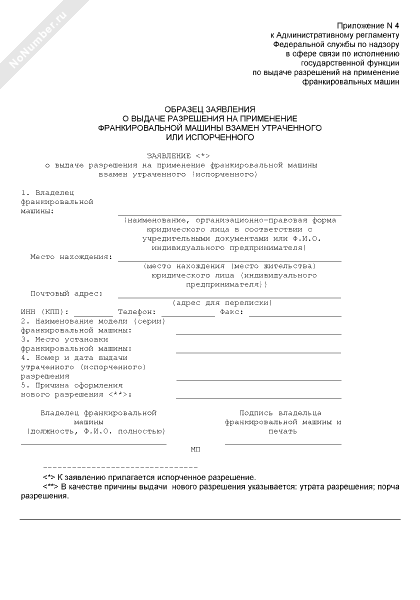 - 1348Заявление о выдаче разрешения на применение франкировальной машины взамен утраченного или испорченного