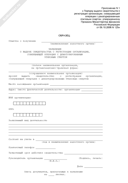 - 1352Заявление о выдаче свидетельства о регистрации организации, совершающей операции с денатурированным этиловым спиртом