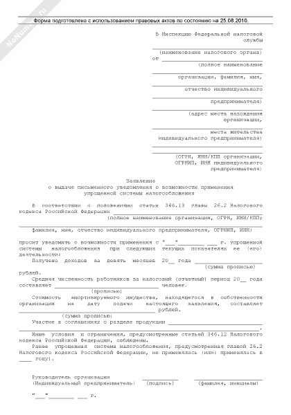 - 1428Заявление о выдаче письменного уведомления о возможности применения упрощенной системы налогообложения