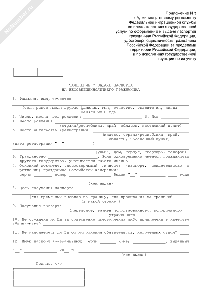 - 1422Заявление о выдаче заграничного паспорта на несовершеннолетнего гражданина