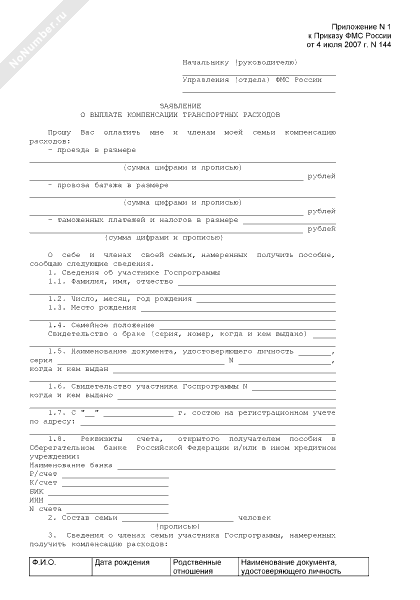 - 1474Заявление о выплате компенсации транспортных расходов участнику государственной программы по оказанию содействия добровольному переселению в Российскую Федерацию соотечественников, проживающих за рубежом