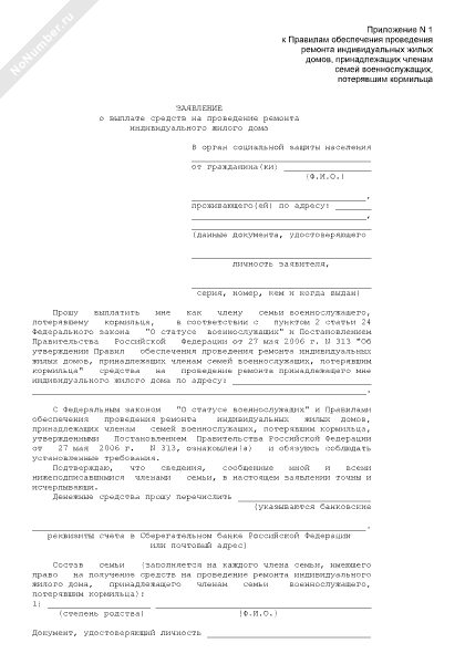 - 1473Заявление о выплате средств на проведение ремонта индивидуального жилого дома