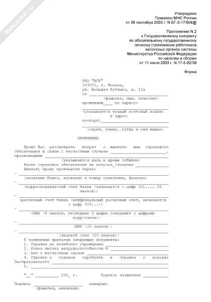 - 1462Заявление о выплате страхового обеспечения работнику налоговых органов в случае получения в связи с осуществлением им служебной деятельности тяжкого или менее тяжкого телесного повреждения
