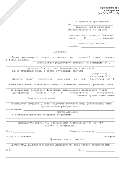 - 1478Заявление о выплате страховой суммы от каждого выгодоприобретателя (несовершеннолетние дети застрахованного лица включаются в заявление одного из супругов, опекуна или попечителя) в связи с гибелью (смертью)