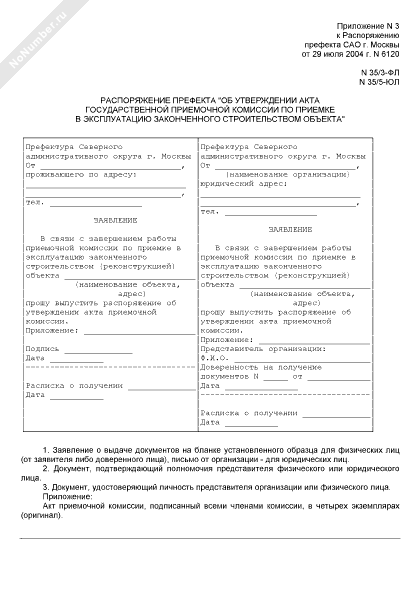 - 1467Заявление о выпуске распоряжения об утверждении акта государственной приемочной комиссии в связи с завершением работы по приемке в эксплуатацию законченного строительством объекта