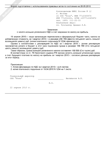 - 1568Заявление о зачете излишне уплаченного НДС в счет недоимки по налогу на прибыль