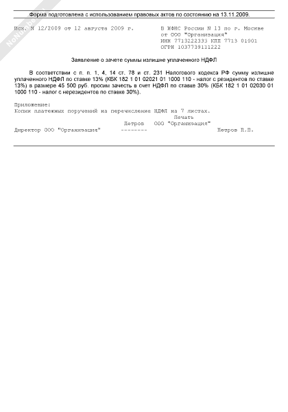 - 1567Заявление о зачете суммы излишне уплаченного НДФЛ (для ситуации, когда сотрудник-резидент стал нерезидентом) (образец составления)