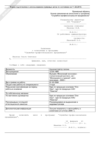 - 1565Заявление о зачислении в программу «Служебно-профессиональное продвижение»