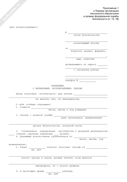 - 1584Заявление о назначении (возобновлении) пенсии сотруднику органов Федеральной службы безопасности