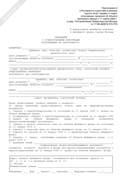 - 1857Заявление о предоставлении информации о лицах, получивших сведения об объекте жилищного фонда с 11 марта 2005 г. в режиме «одного окна» по городу Москве